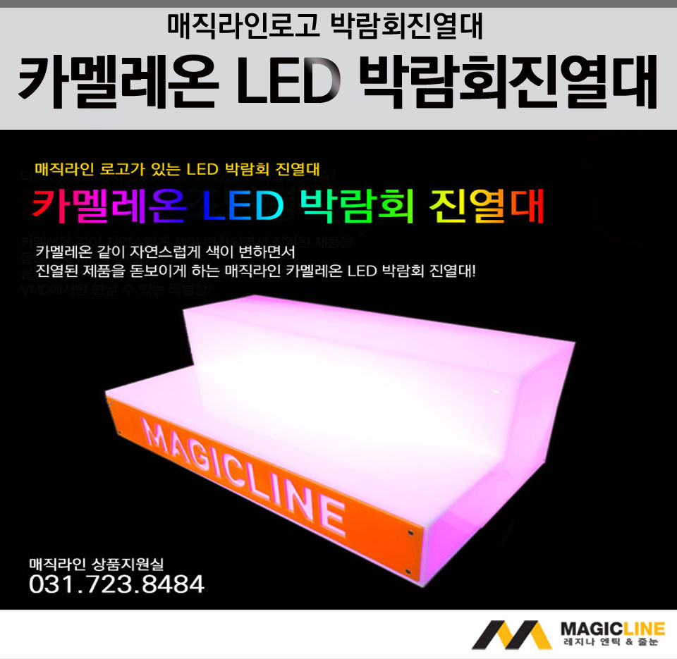 광고홍보자료 | 매직라인로고가 있는 카멜레온 LED박람회진열대