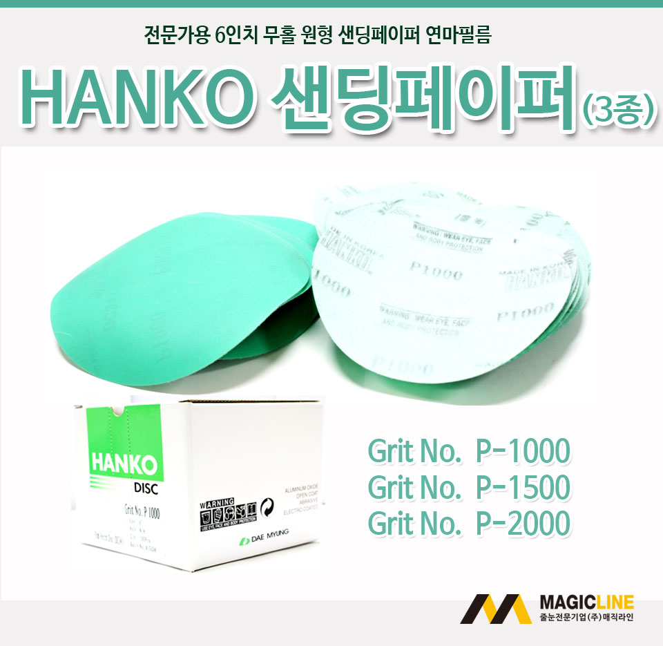 소모품 | 전문가용 HANKO 6인치 무홀 원형 샌딩페이퍼 연마필름(3종)